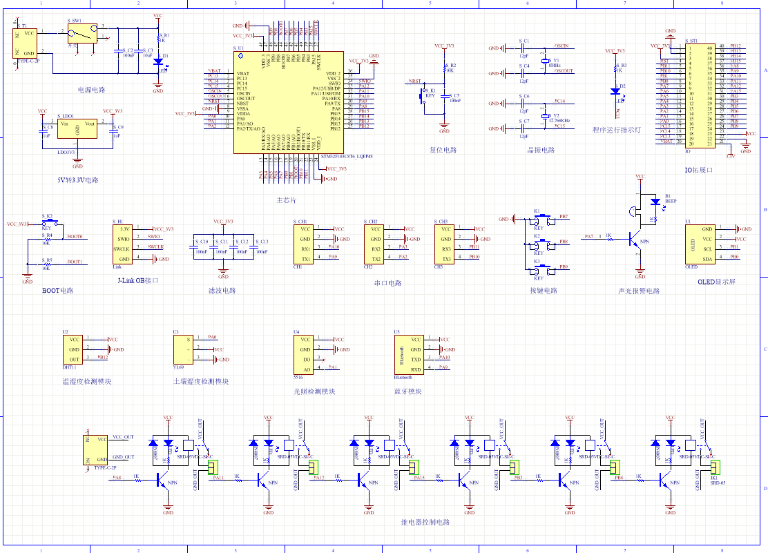 底板:底板在嘉立创进行打板,为绿色PCB板,两层板,厚度1.2,上下覆铜接地。元器件基本上为插针式,个别降压芯片会使用贴片式。