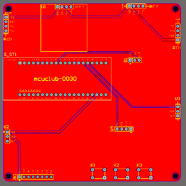 底板:底板在嘉立创进行打板,为绿色PCB板,两层板,厚度1.2,上下覆铜接地。元器件基本上为插针式,个别降压芯片会使用贴片式。