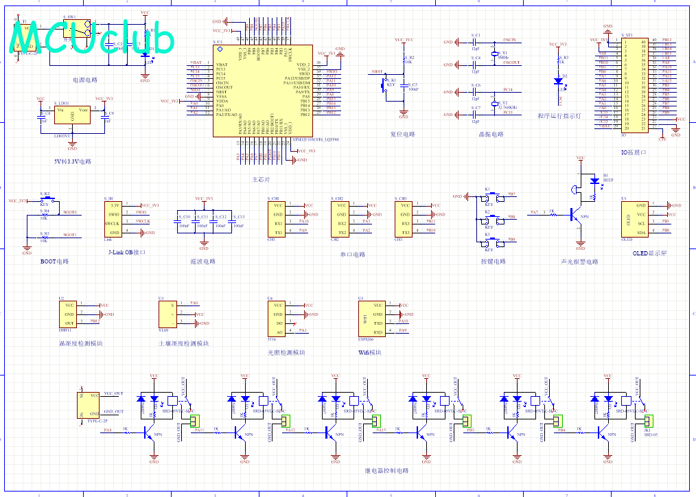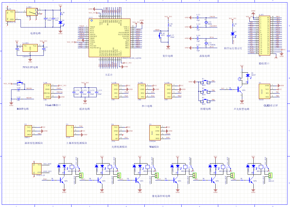 PCB图是由原理图导出,封装很大一部分都是作者自己绘制,不提供封装库,只提供连接好的源文件,可以直接在嘉立创进行打板。两层板,上下覆铜接地。