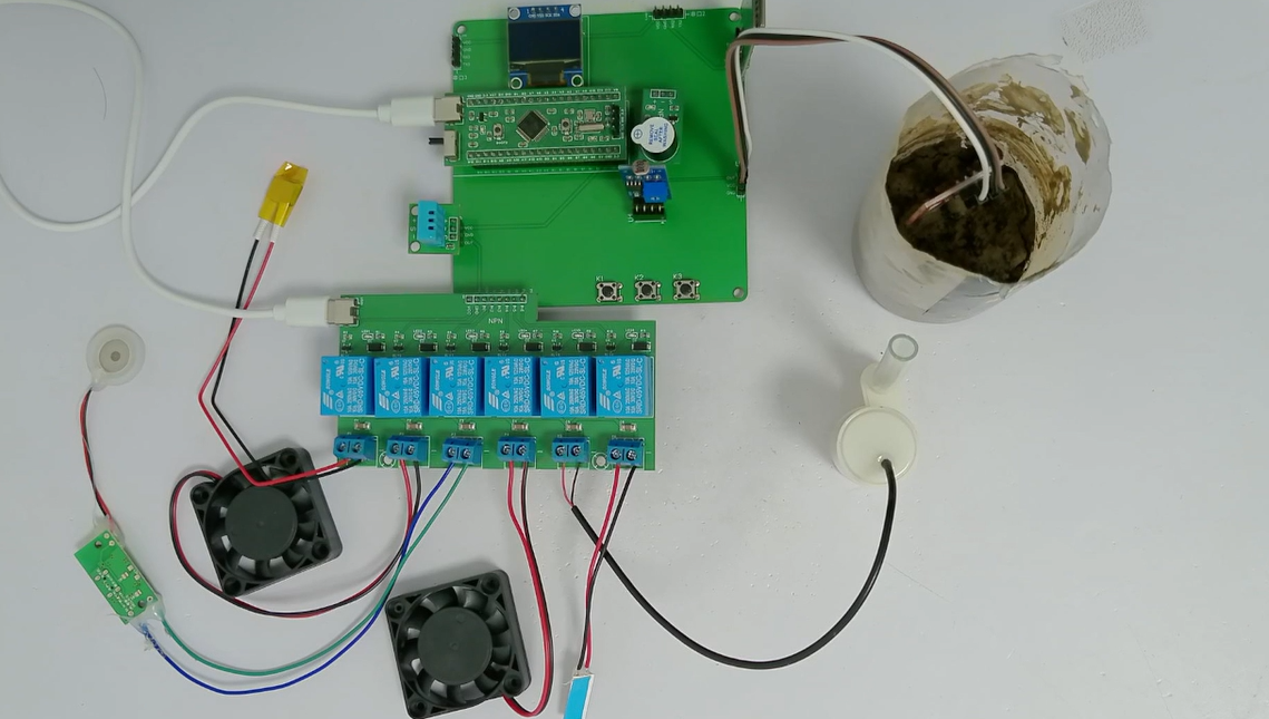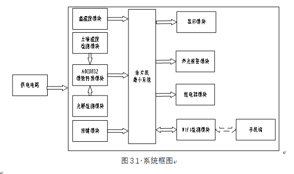 2、通过土壤湿度模块检测土壤湿度,当湿度值小于设置最小值,自动打开水泵浇水,直到湿度大于设置最大值,并声光报警提醒