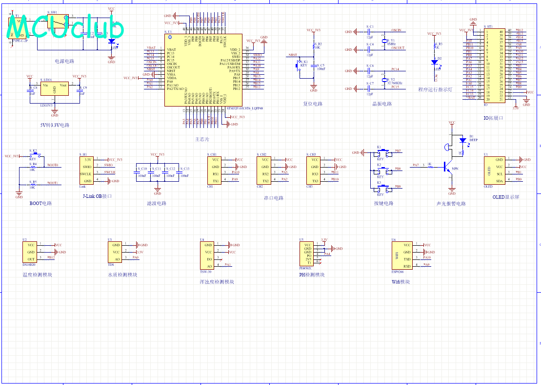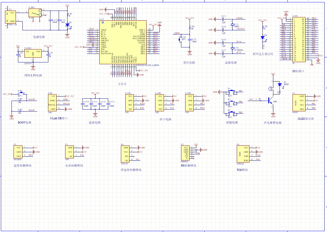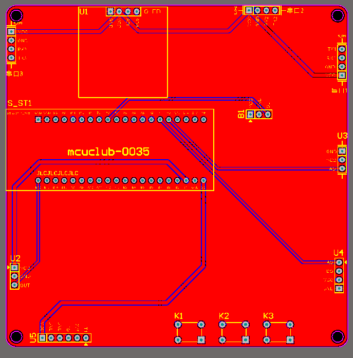 PCB图是由原理图导出,封装很大一部分都是作者自己绘制,不提供封装库,只提供连接好的源文件,可以直接在嘉立创进行打板。两层板,上下覆铜接地。