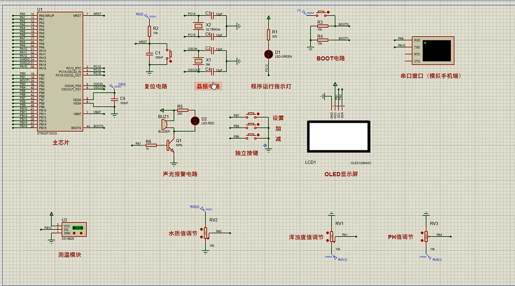 注意:部分实物元器件仿真中没有,仿真中会用其他工作原理相似的元件代替,这样可能导致实物程序和仿真程序不一样