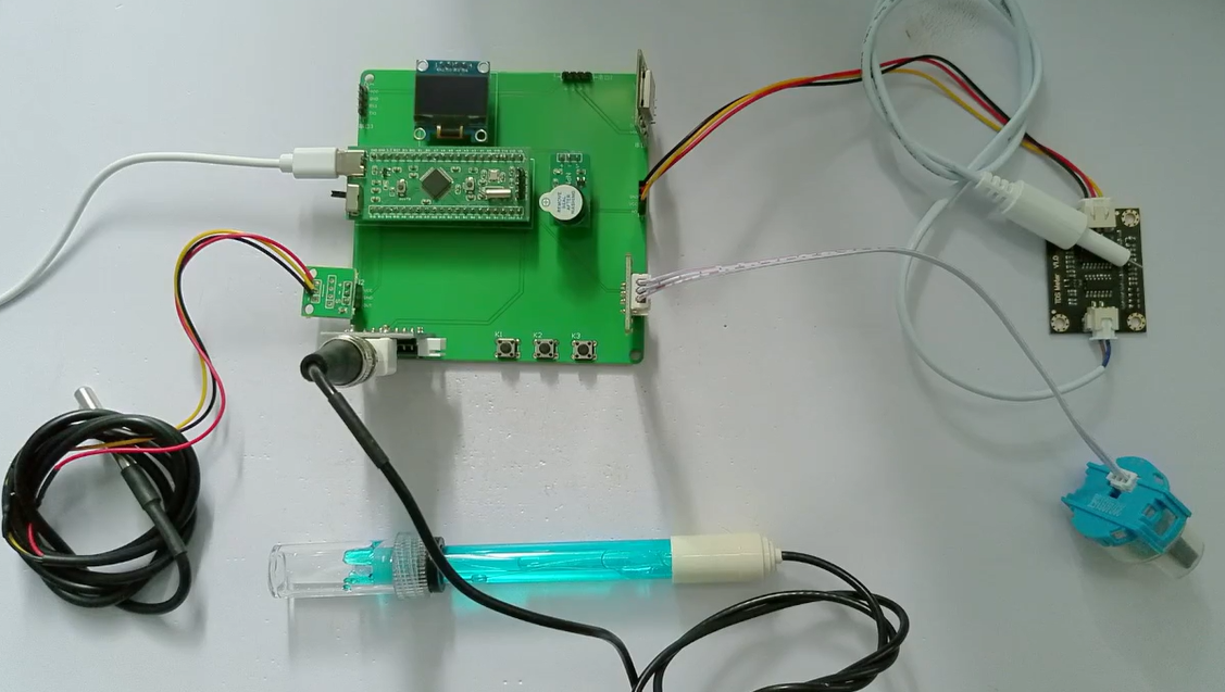 4、通过PH检测模块检测PH值,当PH值不在设置的上下范围内时,进行声光报警提醒