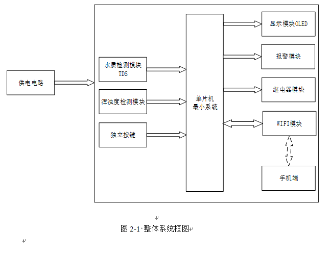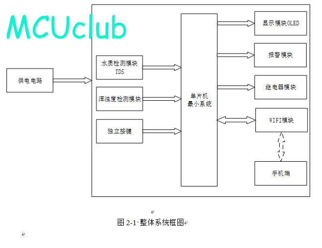 2、通过TDS检测模块检测水中溶解物值,当水中溶解物值大于设置最大值时,进行声光报警提醒