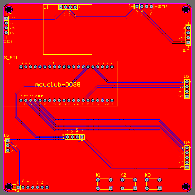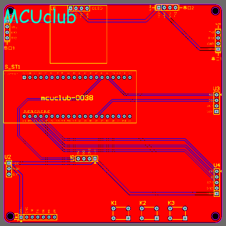 注意:PCB图中间有一个项目编号,隐藏在单片机底座下,插入单片机后不会看到。如果想截没有项目编号的PCB图,可在PCB源文件中点击删除。另外,如果想在实物PCB板上加自己的信息(比如日期、学号、姓名等),可联系客服。
