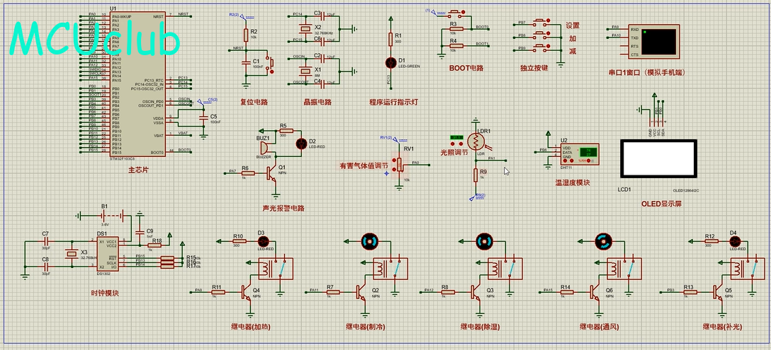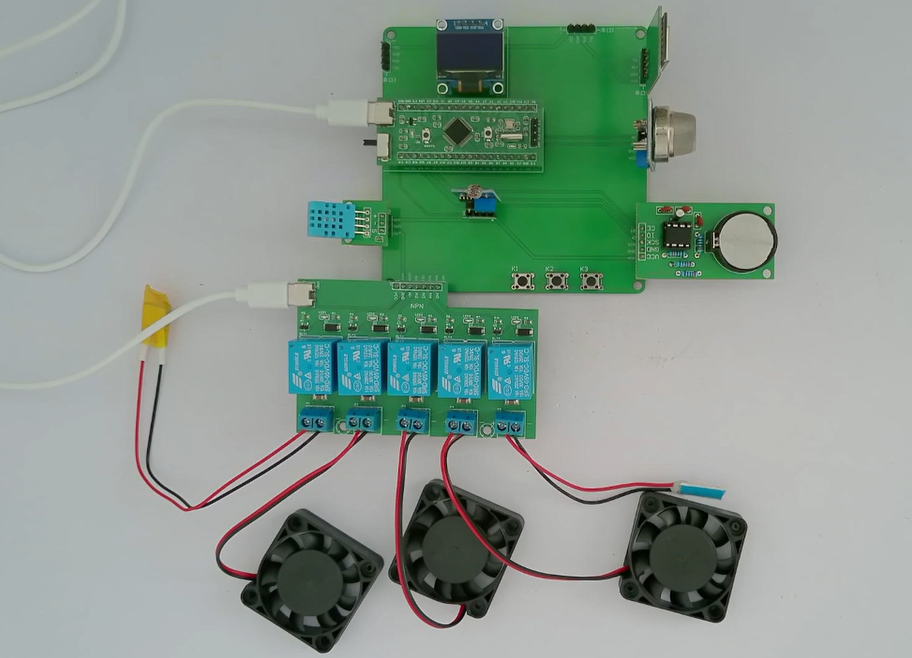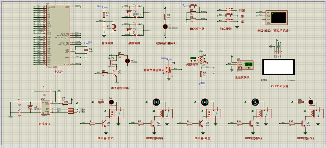 1、通过DHT11检测温湿度值,当温度值大于设置最大值时,进行降温;当温度值小于设置最小值时,进行升温;当湿度值大于设置大最大值时,进行除湿