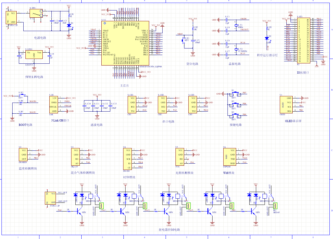 PCB图是由原理图导出,封装很大一部分都是作者自己绘制,不提供封装库,只提供连接好的源文件,可以直接在嘉立创进行打板。两层板,上下覆铜接地。