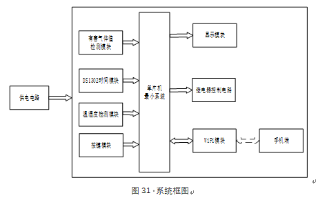 2、通过MQ-135检测模块检测有害气体值,当有害气体值大于设置最大值时,进行通风
