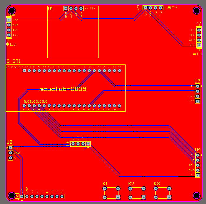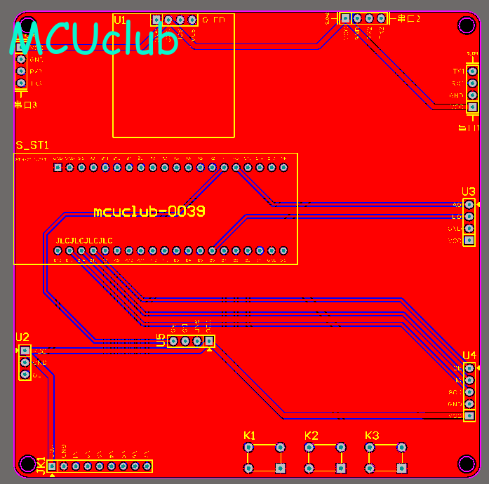 注意:PCB图中间有一个项目编号,隐藏在单片机底座下,插入单片机后不会看到。如果想截没有项目编号的PCB图,可在PCB源文件中点击删除。另外,如果想在实物PCB板上加自己的信息(比如日期、学号、姓名等),可联系客服。