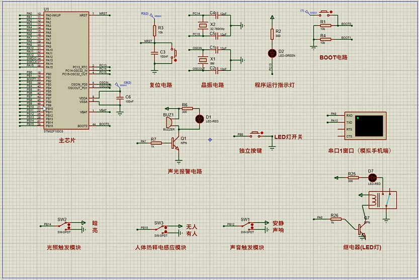 注意:部分实物元器件仿真中没有,仿真中会用其他工作原理相似的元件代替,这样可能导致实物程序和仿真程序不一样