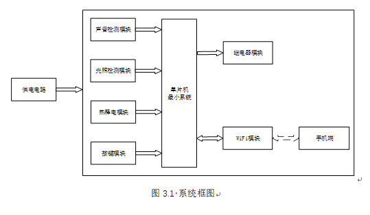 4、当楼道光线较暗时,此时如果有人或者检测到声音,自动打开楼道灯,10s后自动关闭