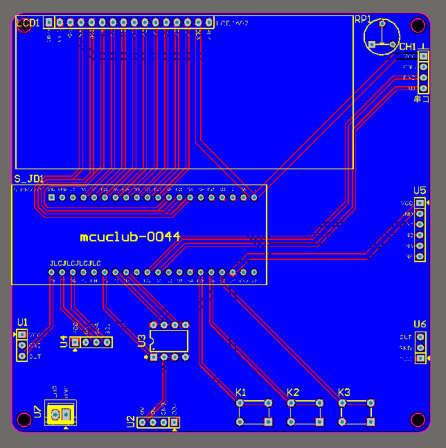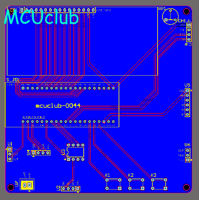 注意:PCB图中间有一个项目编号,隐藏在单片机底座下,插入单片机后不会看到。如果想截没有项目编号的PCB图,可在PCB源文件中点击删除。另外,如果想在实物PCB板上加自己的信息(比如日期、学号、姓名等),可联系客服。