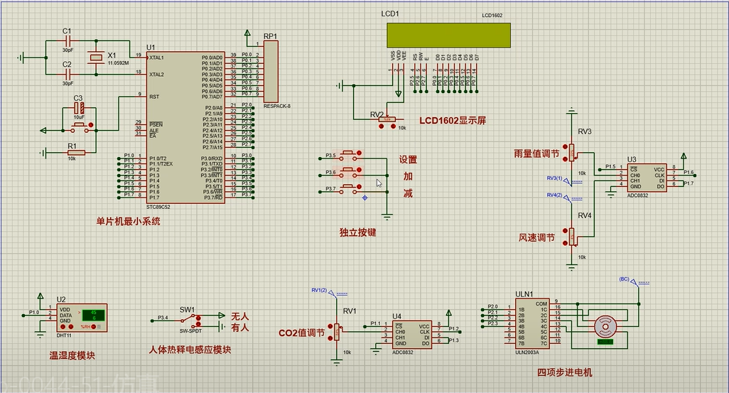 6、通过按键可设置各阈值,另外,可通过按键手动控制窗户开关