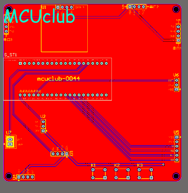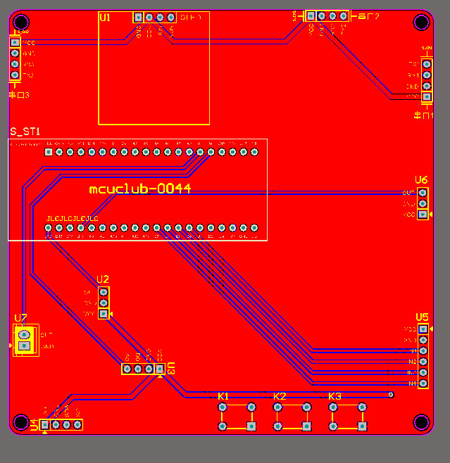 注意:PCB图中间有一个项目编号,隐藏在单片机底座下,插入单片机后不会看到。如果想截没有项目编号的PCB图,可在PCB源文件中点击删除。另外,如果想在实物PCB板上加自己的信息(比如日期、学号、姓名等),可联系客服。
