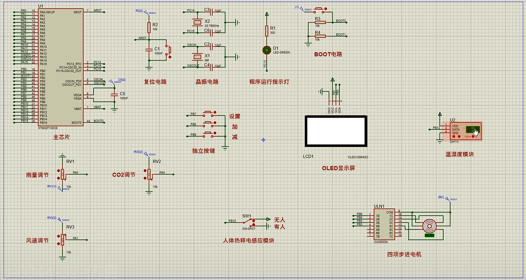 注意:部分实物元器件仿真中没有,仿真中会用其他工作原理相似的元件代替,这样可能导致实物程序和仿真程序不一样