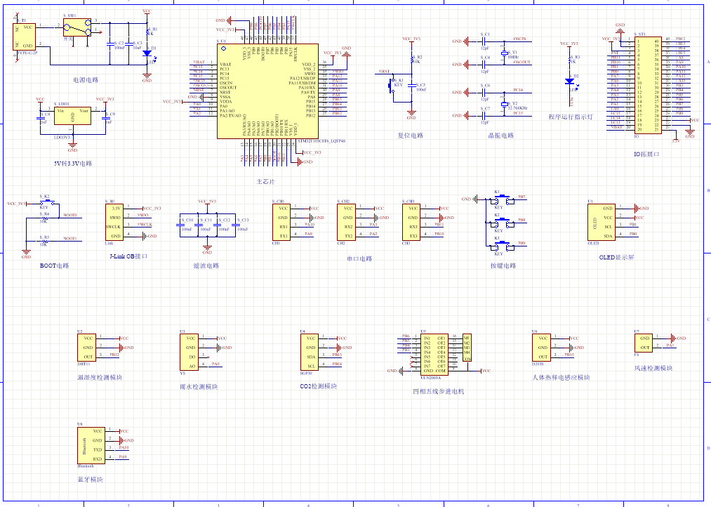 PCB图是由原理图导出,封装很大一部分都是作者自己绘制,不提供封装库,只提供连接好的源文件,可以直接在嘉立创进行打板。两层板,上下覆铜接地。
