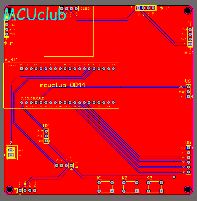 注意:PCB图中间有一个项目编号,隐藏在单片机底座下,插入单片机后不会看到。如果想截没有项目编号的PCB图,可在PCB源文件中点击删除。另外,如果想在实物PCB板上加自己的信息(比如日期、学号、姓名等),可联系客服。