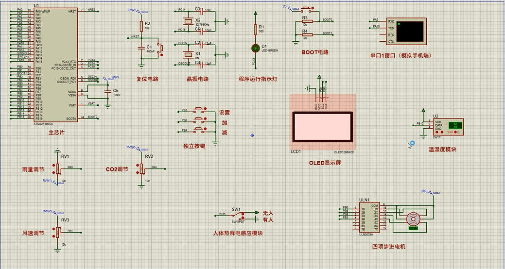 注意:部分实物元器件仿真中没有,仿真中会用其他工作原理相似的元件代替,这样可能导致实物程序和仿真程序不一样