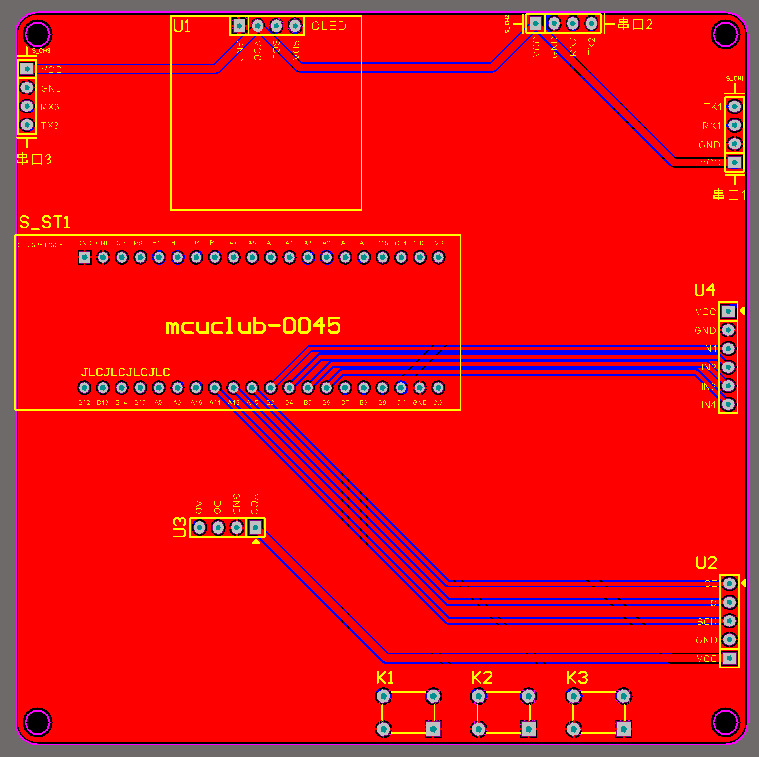注意:PCB图中间有一个项目编号,隐藏在单片机底座下,插入单片机后不会看到。如果想截没有项目编号的PCB图,可在PCB源文件中点击删除。另外,如果想在实物PCB板上加自己的信息(比如日期、学号、姓名等),可联系客服。
