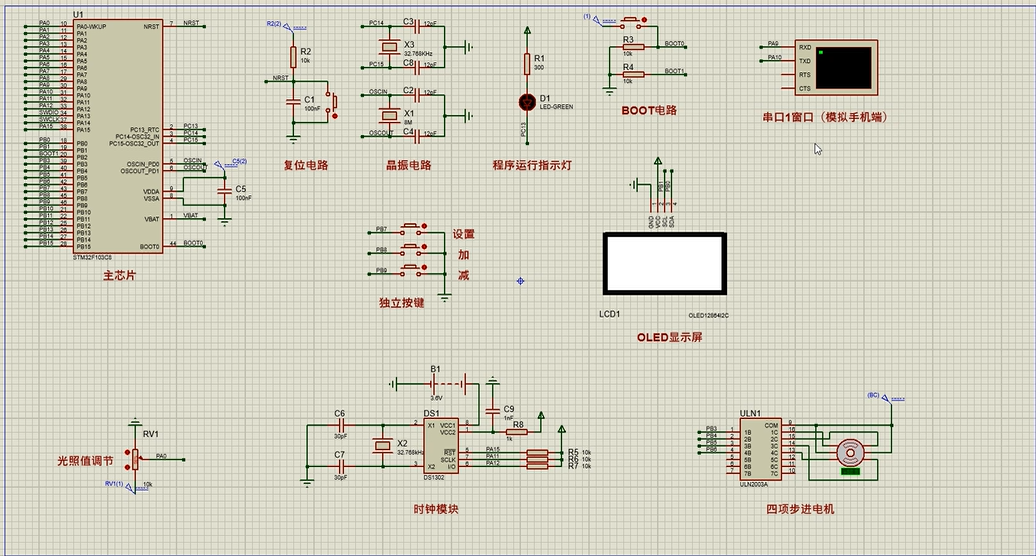 注意:部分实物元器件仿真中没有,仿真中会用其他工作原理相似的元件代替,这样可能导致实物程序和仿真程序不一样