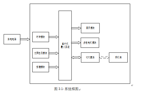 2、通过光照检测模块检测光照值,当光照值低于设置最小值,关闭窗帘;当光照值高于设置最大值,关闭窗帘(防止太阳光过强损坏室内衣物);当光照在两者之间且处于开窗帘时间区间内时,打开窗帘