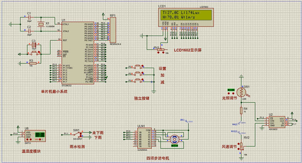 注意:部分实物元器件仿真中没有,仿真中会用其他工作原理相似的元件代替,这样可能导致实物程序和仿真程序不一样