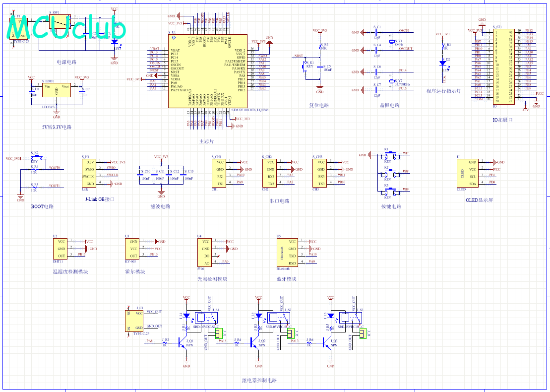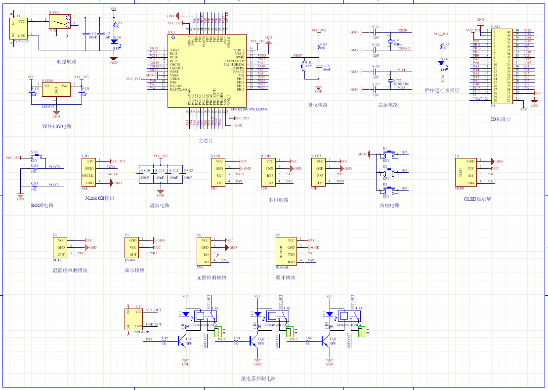 PCB图是由原理图导出,封装很大一部分都是作者自己绘制,不提供封装库,只提供连接好的源文件,可以直接在嘉立创进行打板。两层板,上下覆铜接地。