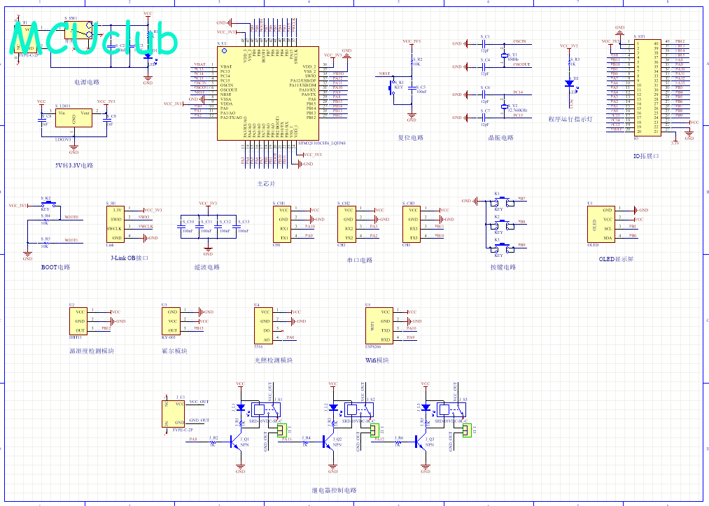 底板:底板在嘉立创进行打板,为绿色PCB板,两层板,厚度1.2,上下覆铜接地。元器件基本上为插针式,个别降压芯片会使用贴片式。