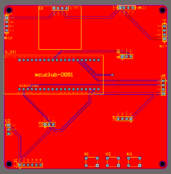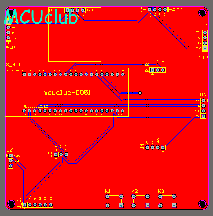 注意:PCB图中间有一个项目编号,隐藏在单片机底座下,插入单片机后不会看到。如果想截没有项目编号的PCB图,可在PCB源文件中点击删除。另外,如果想在实物PCB板上加自己的信息(比如日期、学号、姓名等),可联系客服。