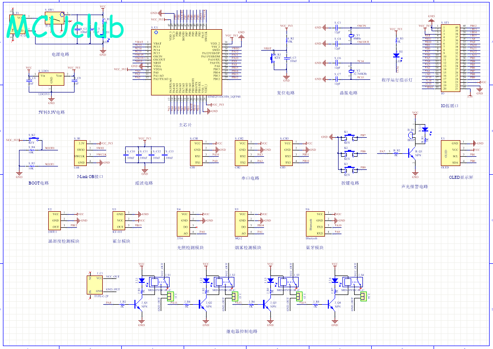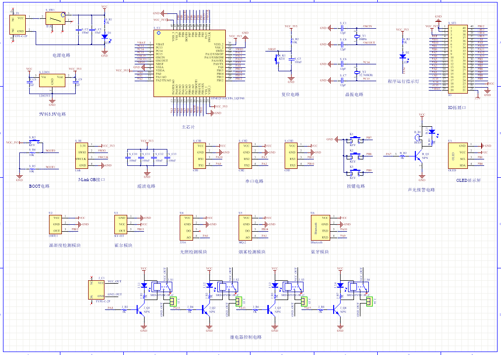 PCB图是由原理图导出,封装很大一部分都是作者自己绘制,不提供封装库,只提供连接好的源文件,可以直接在嘉立创进行打板。两层板,上下覆铜接地。