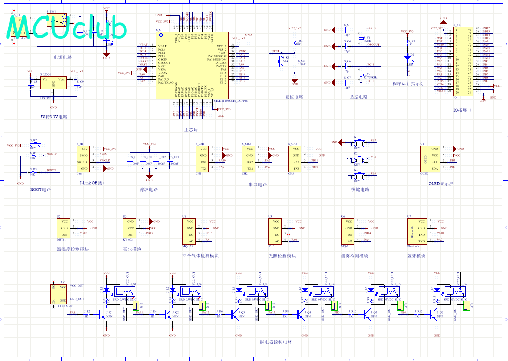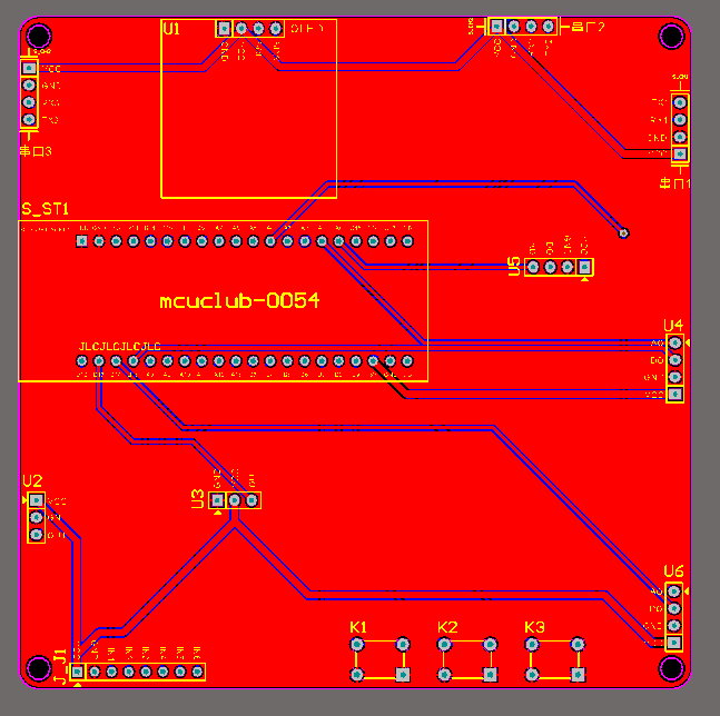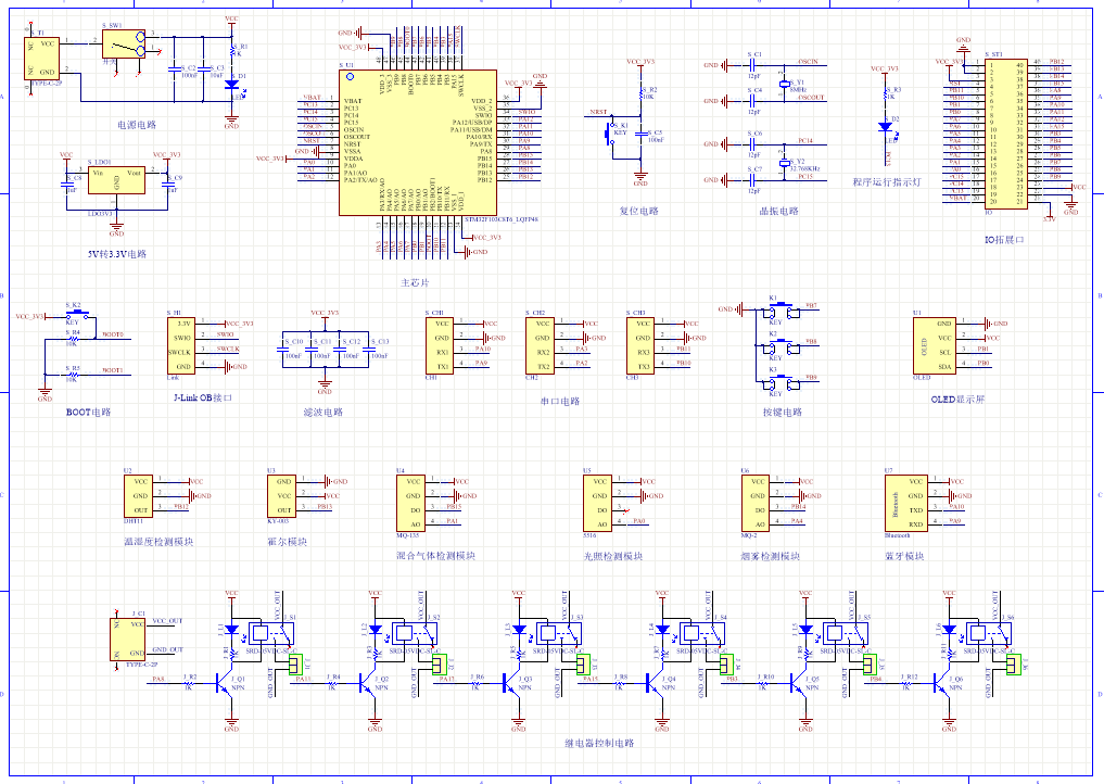 PCB图是由原理图导出,封装很大一部分都是作者自己绘制,不提供封装库,只提供连接好的源文件,可以直接在嘉立创进行打板。两层板,上下覆铜接地。