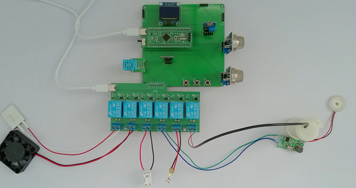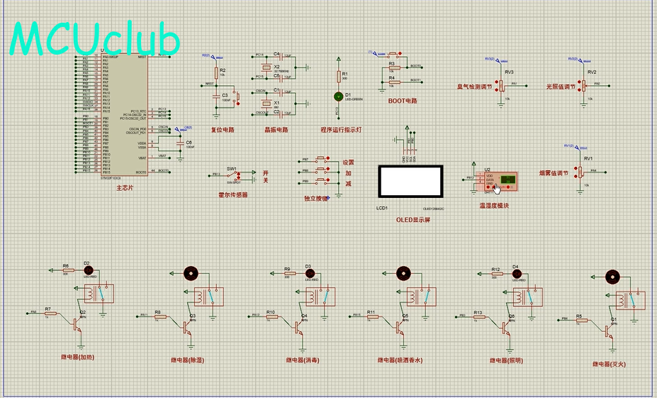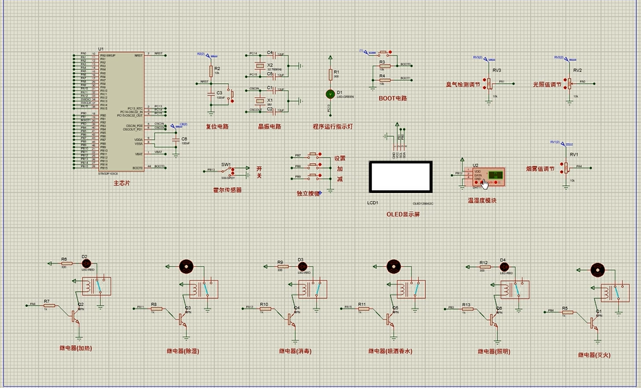 6、通过按键可设置各阈值,另外,可通过按键手动控制加热、除湿、消毒、喷洒香水、照明、水泵