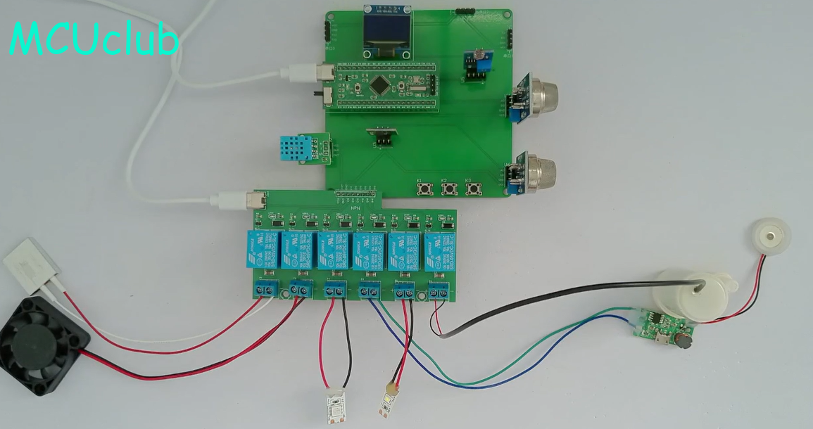 5、通过MQ-2检测烟雾值,当烟雾值大于设置最大值,启动水泵灭火