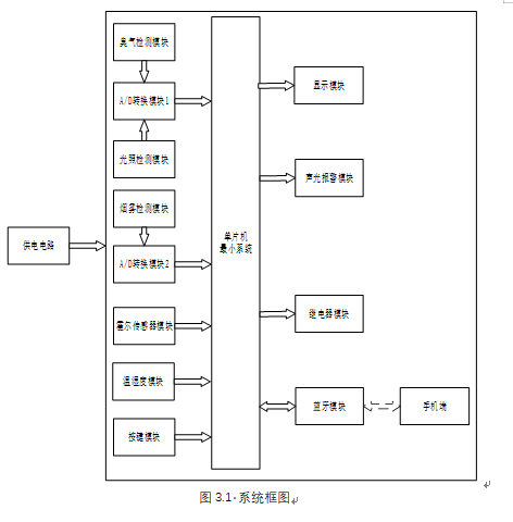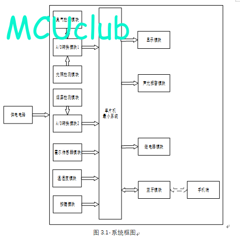 3、通过MQ-135检测鞋柜内混合气体(臭气),当混合气体值大于设置最大值时,并且柜门处于关闭状态,启动紫外线消毒灯,同时喷洒香水