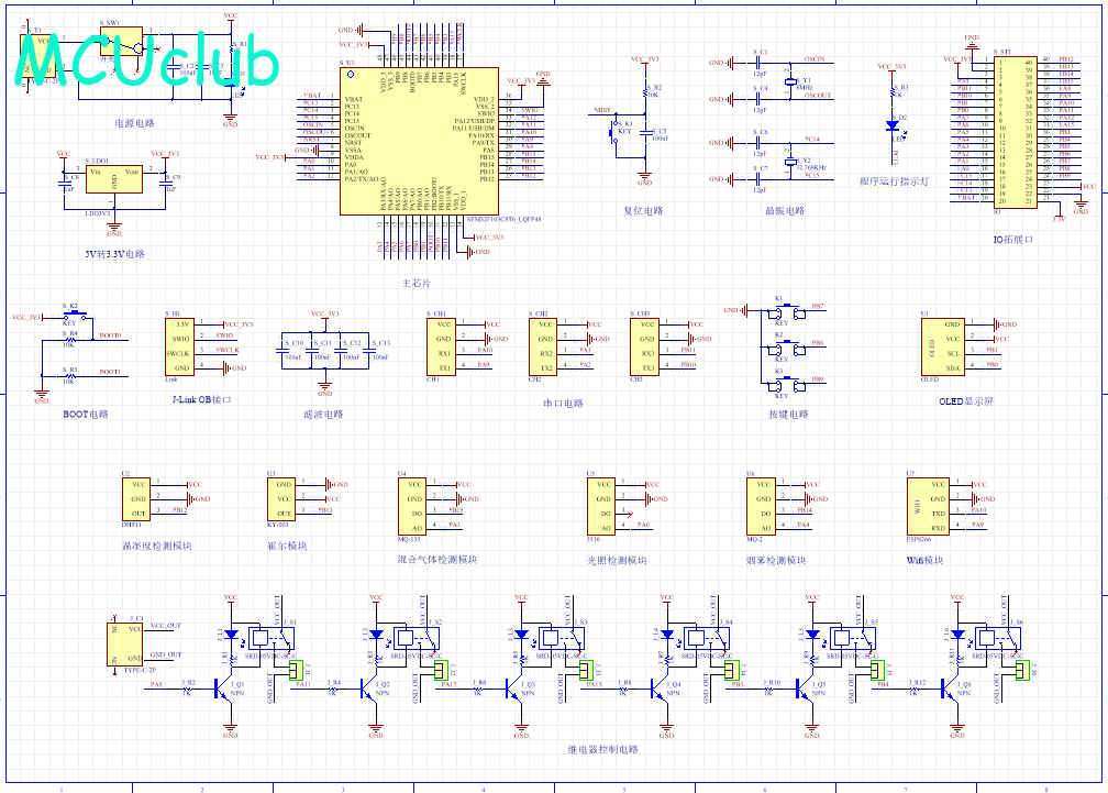 PCB图是由原理图导出,封装很大一部分都是作者自己绘制,不提供封装库,只提供连接好的源文件,可以直接在嘉立创进行打板。两层板,上下覆铜接地。