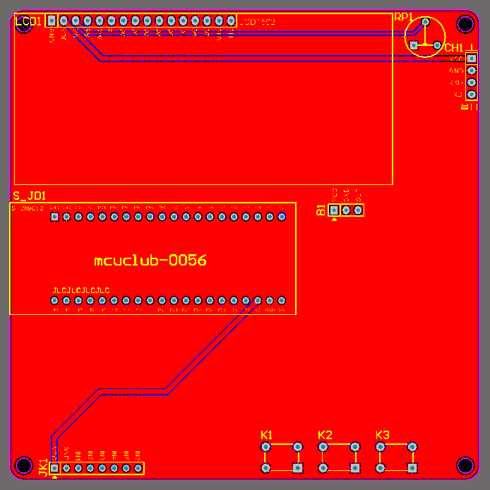 注意:PCB图中间有一个项目编号,隐藏在单片机底座下,插入单片机后不会看到。如果想截没有项目编号的PCB图,可在PCB源文件中点击删除。另外,如果想在实物PCB板上加自己的信息(比如日期、学号、姓名等),可联系客服。