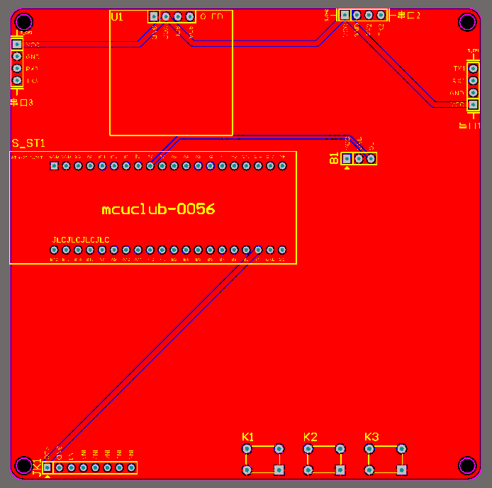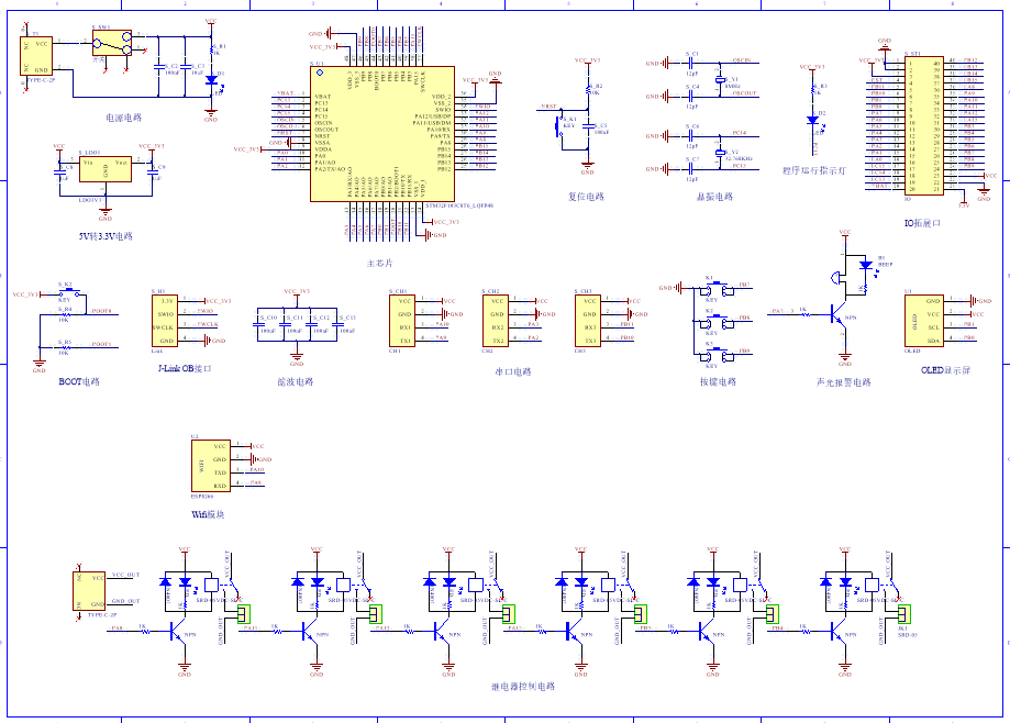 PCB图是由原理图导出,封装很大一部分都是作者自己绘制,不提供封装库,只提供连接好的源文件,可以直接在嘉立创进行打板。两层板,上下覆铜接地。