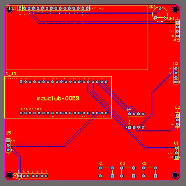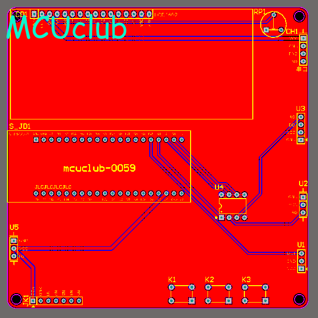 注意:PCB图中间有一个项目编号,隐藏在单片机底座下,插入单片机后不会看到。如果想截没有项目编号的PCB图,可在PCB源文件中点击删除。另外,如果想在实物PCB板上加自己的信息(比如日期、学号、姓名等),可联系客服。