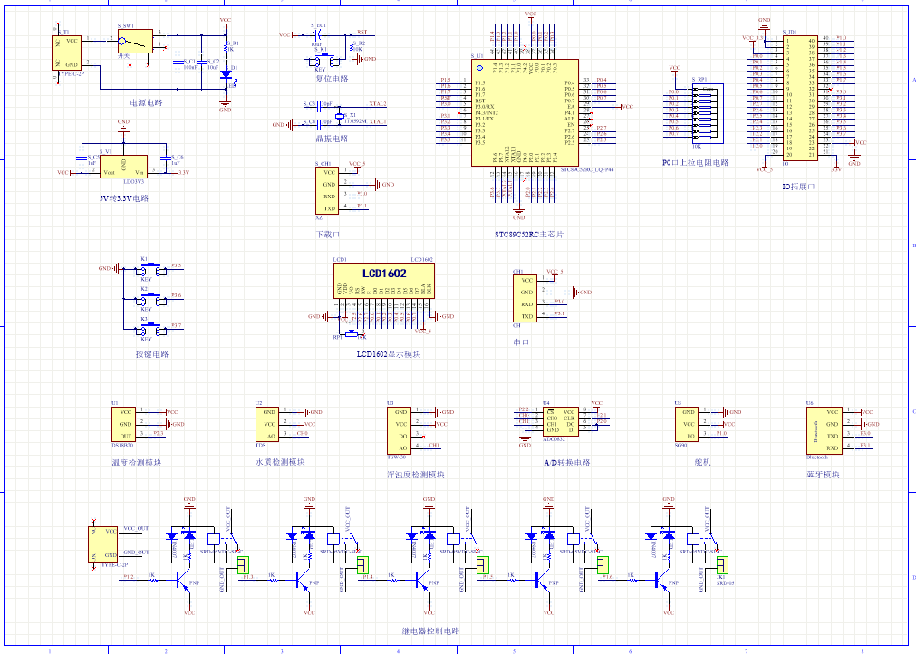 扩展功能:通过蓝牙模块将测量数据发送到手机端,手机端可设置各阈值,另外,手机端可远程控制加热、降温、换水、投喂、充氧