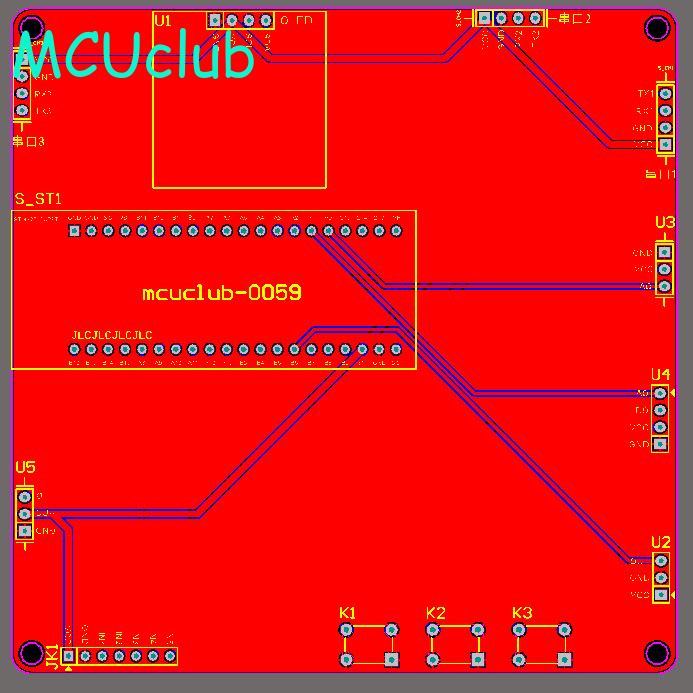 注意:PCB图中间有一个项目编号,隐藏在单片机底座下,插入单片机后不会看到。如果想截没有项目编号的PCB图,可在PCB源文件中点击删除。另外,如果想在实物PCB板上加自己的信息(比如日期、学号、姓名等),可联系客服。