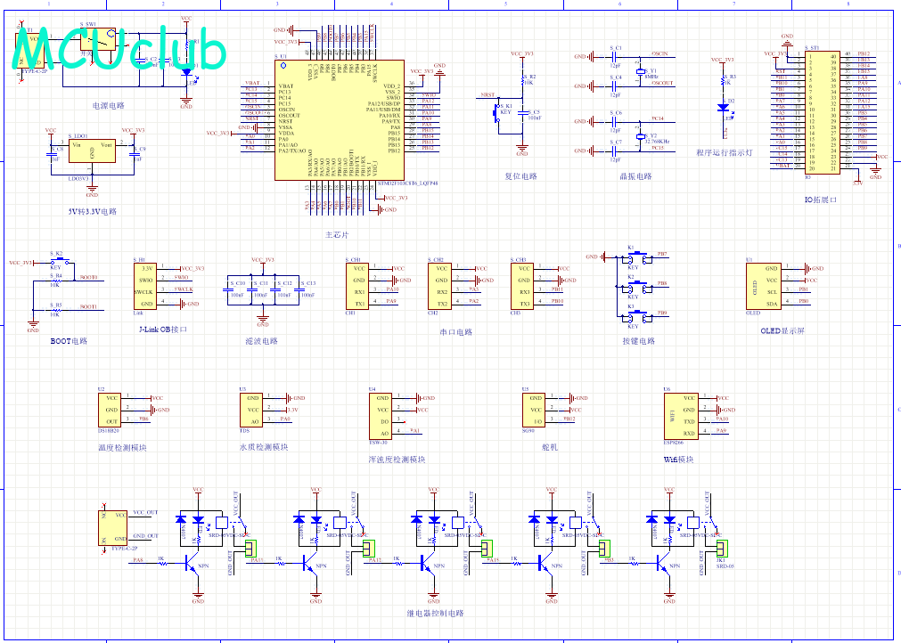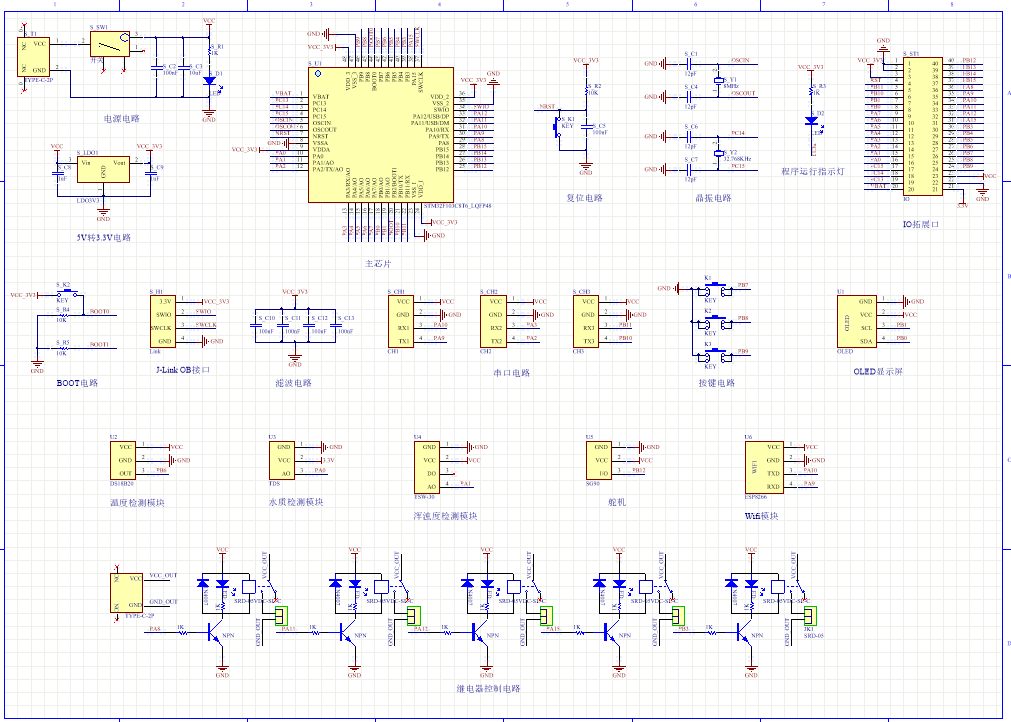 PCB图是由原理图导出,封装很大一部分都是作者自己绘制,不提供封装库,只提供连接好的源文件,可以直接在嘉立创进行打板。两层板,上下覆铜接地。