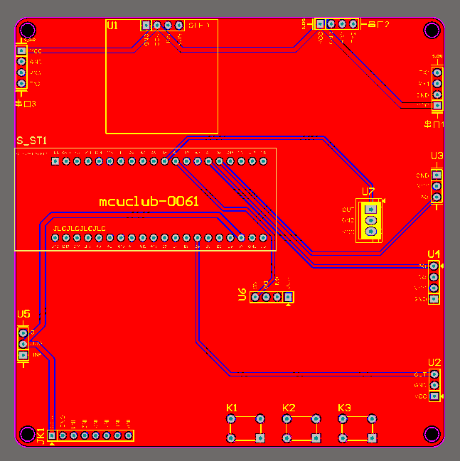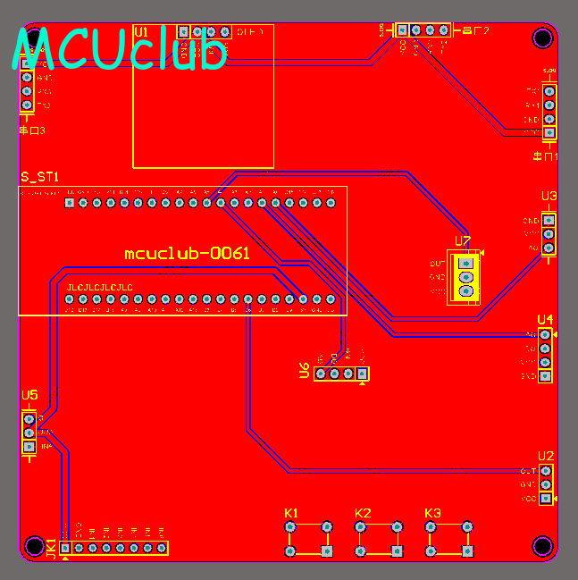 注意:PCB图中间有一个项目编号,隐藏在单片机底座下,插入单片机后不会看到。如果想截没有项目编号的PCB图,可在PCB源文件中点击删除。另外,如果想在实物PCB板上加自己的信息(比如日期、学号、姓名等),可联系客服。