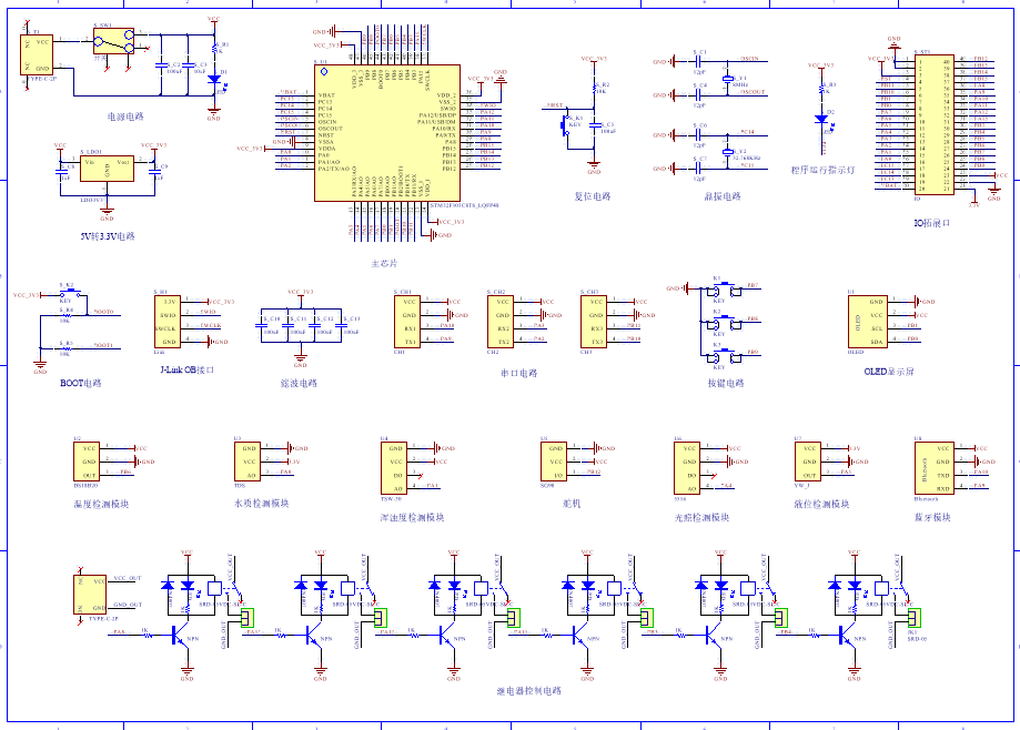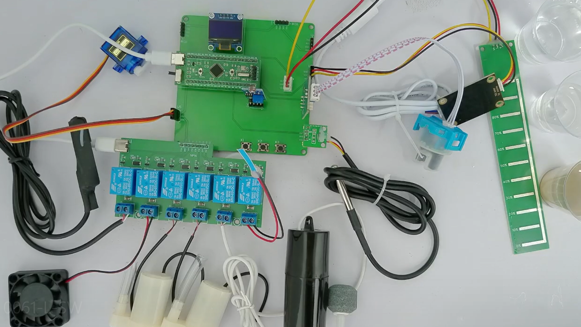 扩展功能:通过蓝牙模块将测量数据发送到手机端,手机端可设置各阈值,另外,手机端可远程控制加热、降温、换水、投喂、充氧、补光、加水