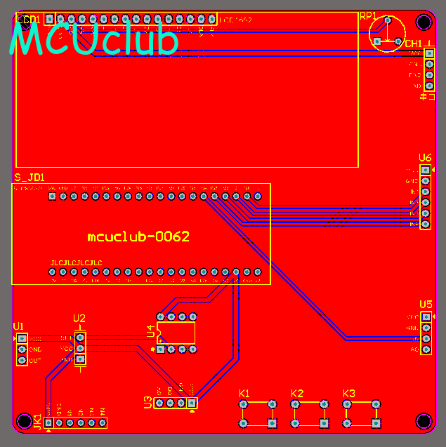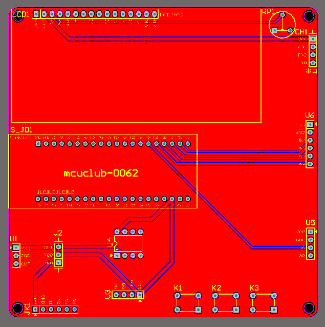 PCB图是由原理图导出,封装很大一部分都是作者自己绘制,不提供封装库,只提供连接好的源文件,可以直接在嘉立创进行打板。两层板,上下覆铜接地。