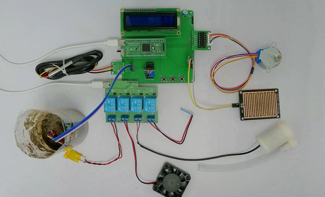 1、通过防水式DS18B20检测土壤温度,温度大于设置的最大值,进行降温(风扇);温度小于设置的最小值,进行加热(加热棒)