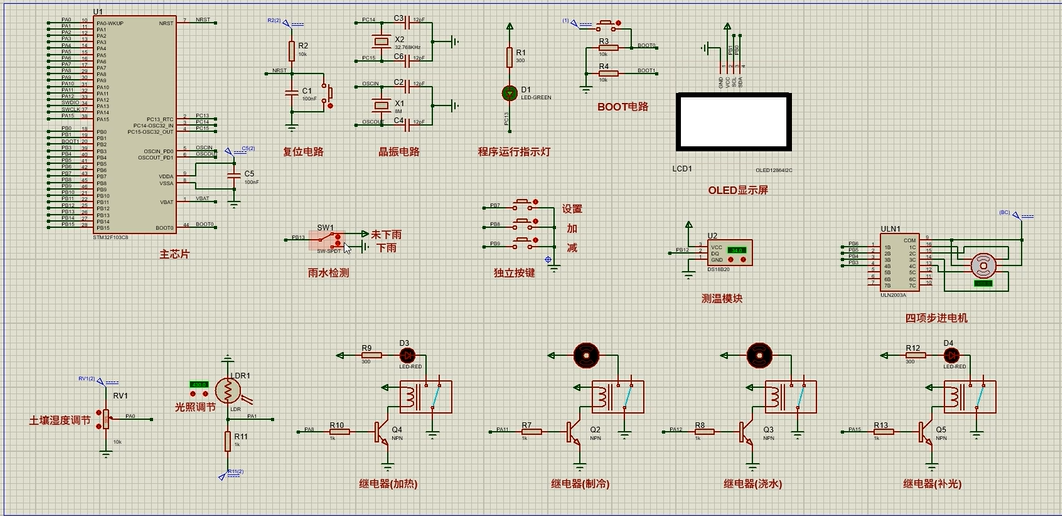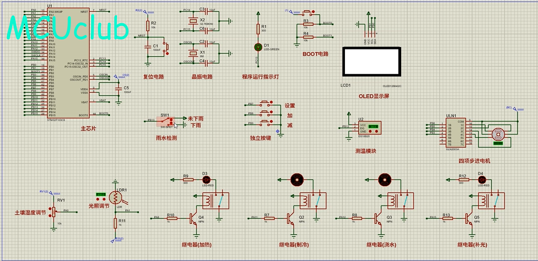 1、通过防水式DS18B20检测土壤温度,温度大于设置的最大值,进行降温(风扇);温度小于设置的最小值,进行加热(加热棒)