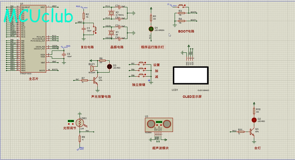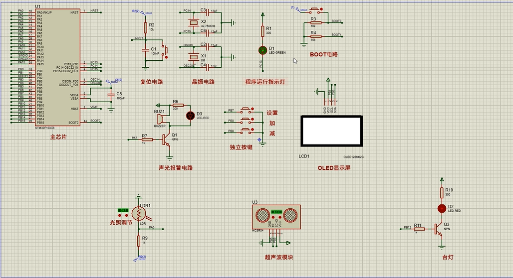 注意:部分实物元器件仿真中没有,仿真中会用其他工作原理相似的元件代替,这样可能导致实物程序和仿真程序不一样