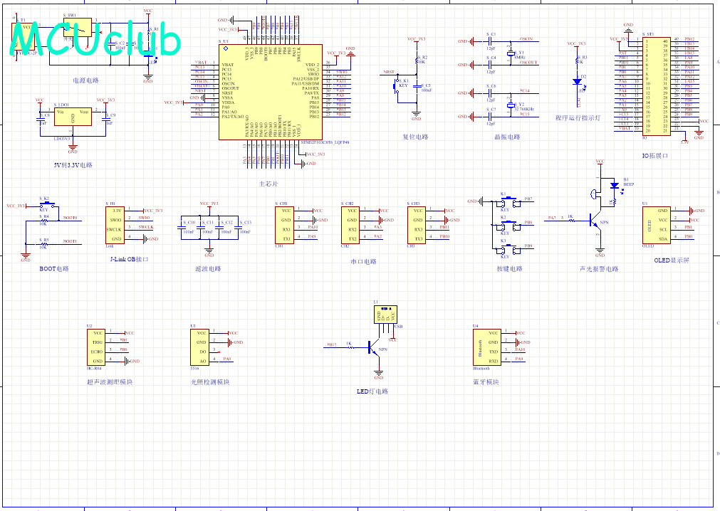 PCB图是由原理图导出,封装很大一部分都是作者自己绘制,不提供封装库,只提供连接好的源文件,可以直接在嘉立创进行打板。两层板,上下覆铜接地。