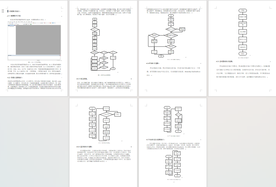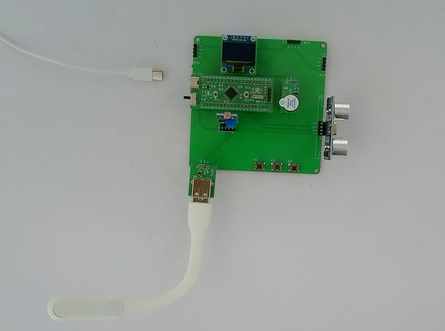 3、当距离值小于设置最大值,则证明有人在台灯前,此时如果光照小于设置最大值,则打开灯光,在最大值和最小值之间,根据光照值自动调节光亮度,当小于设置最小值,则调整为最大亮度