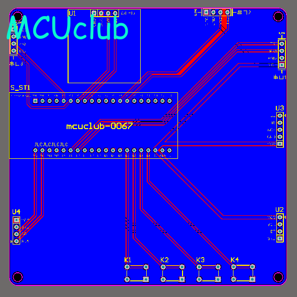 注意:PCB图中间有一个项目编号,隐藏在单片机底座下,插入单片机后不会看到。如果想截没有项目编号的PCB图,可在PCB源文件中点击删除。另外,如果想在实物PCB板上加自己的信息(比如日期、学号、姓名等),可联系客服。